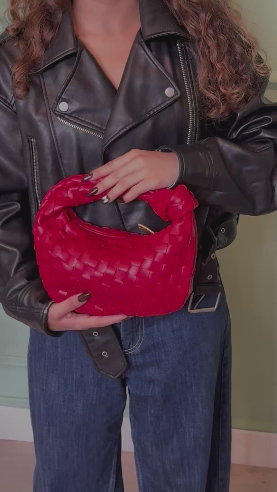 La nostra “Bag intreccio media rossa” ha dimensioni 20x17x5 cm; All’interno comprende un rivestimento in eco pelle🤍